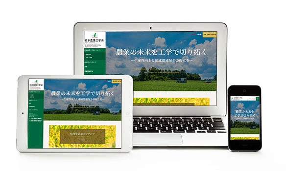 日本農業工学会(JAICABE)様ホームページのディレクション・マルチデバイス対応(PC、タブレット、スマートフォンレスポンシブ)デザイン制作、CMS設置・設定、サーバー・データ移行。